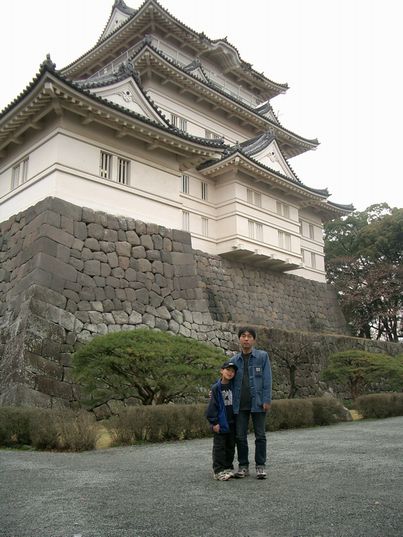 ○×△城跡の天守閣の前
