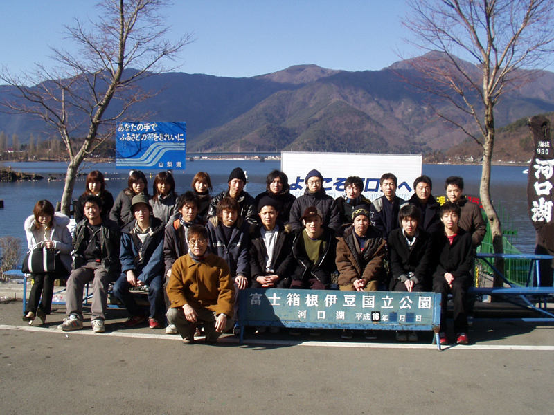 2月3日から5日まで、富士セミナーハウスでゼミ合宿をしました。セミナーハウスは河口湖近くの鳴沢村にあります。近くには富士五湖のほか樹海も広がっており、快適な環境です。しかし、あいにくというか幸いなことに、用意できた車は2台。全員が移動するには2往復必要なので、勉強するしか手がありません。卒業間近の4年生が3人、あとは3年生と4月からゼミに入る2年生、あわせて23名が参加しました。今回も昨年の合宿と同様、計量経済学を講義することにしました。